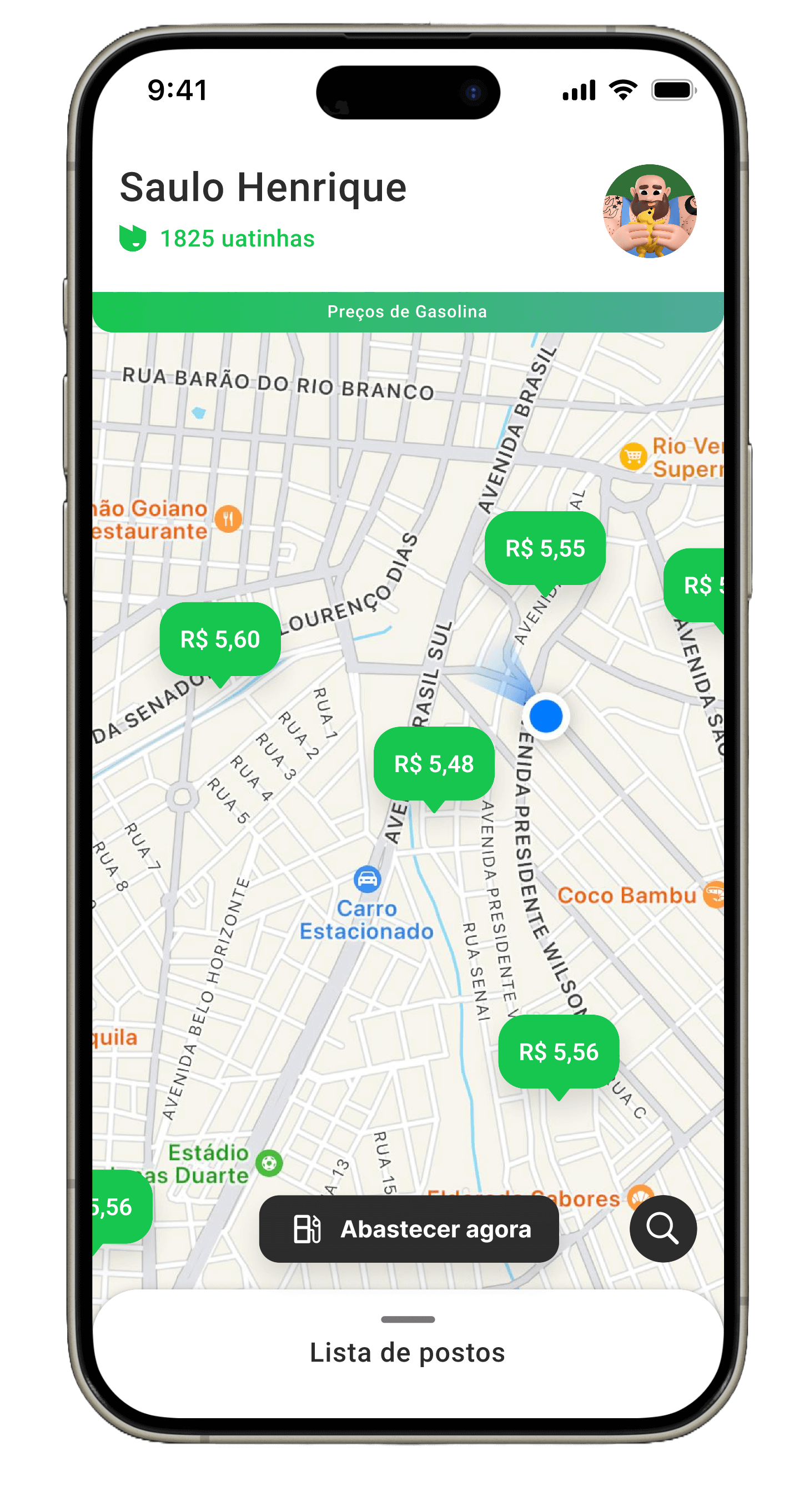 Tenha em mãos um mapa com estabelecimentos próximos a você com valores do combustível de sua preferência.